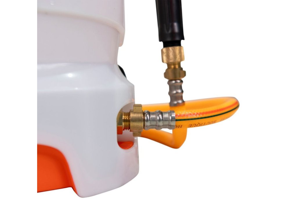 - Další silnou stránkou postřikovače je měděný konektor hadice, který zabraňuje úniku kapaliny a zajišťuje pevné a odolné spojení