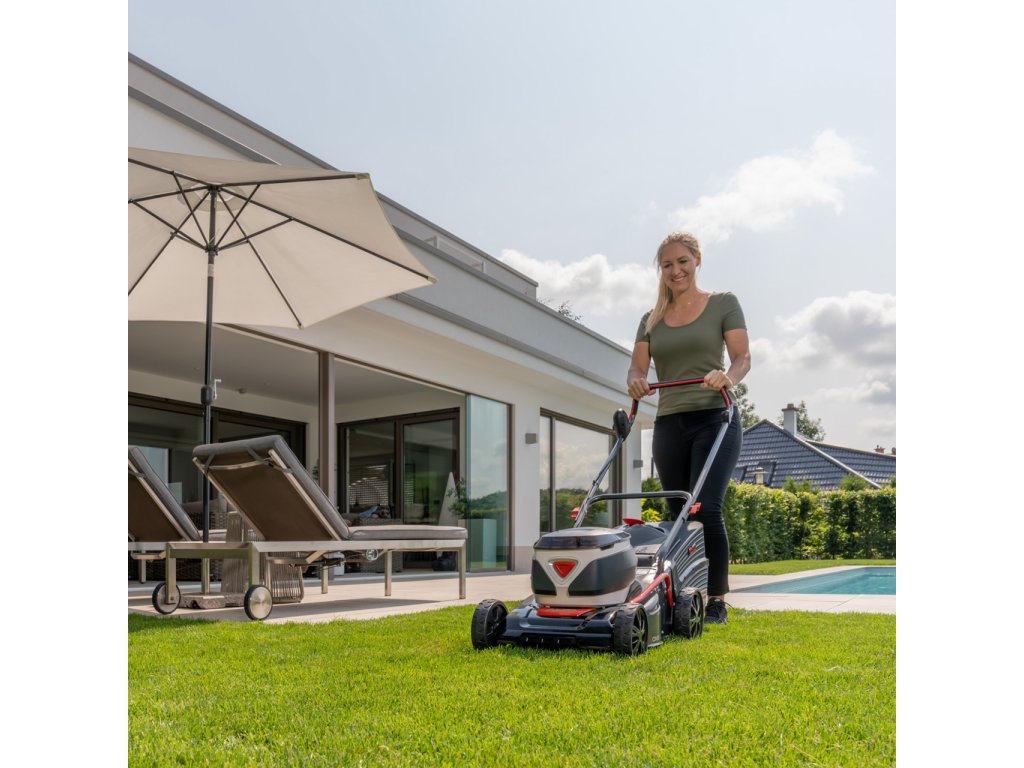 36V lithium-iontová baterie zajišťuje efektivní práci na trávnících o rozloze 400 - 800 m². Díky Li-Ion článkům je tato baterie mimořádně odolná a nedochází k samovybíjení. Díky integrovanému LED displeji snadno uvidíte, kdy je potřeba baterii nabít. Baterie se nabije za 90 minut