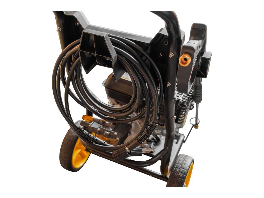 Benzínový vysokotlaký čistič je mimořádně výkonný stroj navržený pro čištění i těch neodolnějších nečistot. Je ideální pro použití na terasách, příjezdových cestách, fasádách budov, zahradním nábytku nebo vozidlech. Díky silnému benzínovému motoru poskytuje vysoký tlak vody, což umožňuje snadno odstraňovat bahno, mech mastnotu i zažranou špínu tam, kde běžné elektrické čističe nestačí.