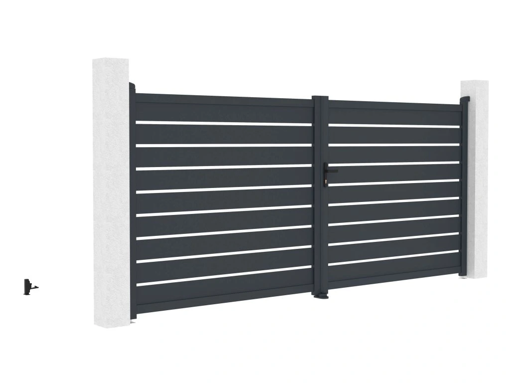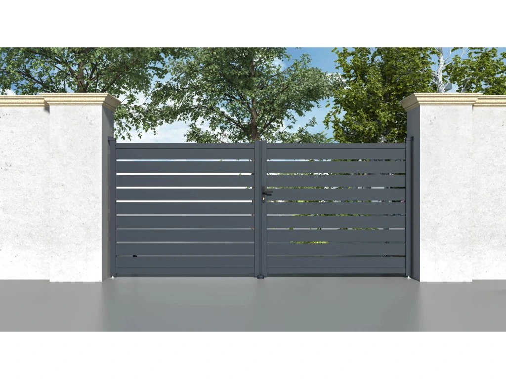 Vjezdovou bránu Reno jsme vyrobili z lehkého, pevného a hlavně bezúdržbového hliníku. Je odolný vůči prasknutí i prohnutí, nezreziví a antracitový odstín, nanesený práškovým nástřikem, dodává vjezdové bráně atraktivitu a stálobarevnost. Zesílený profil dvoukřídlé vjezdové brány Reno vám navíc v budoucnu umožní montáž elektrického otevírání.