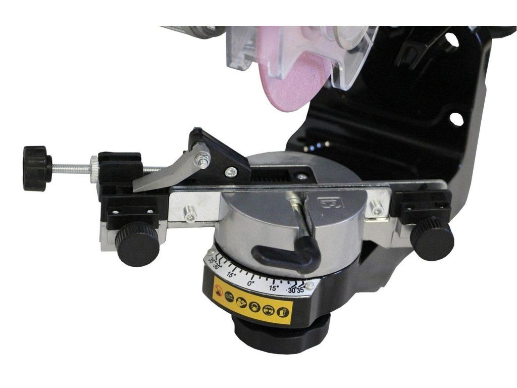 Bruska pilových řetězů 230 W disponuje možností trvalého upnutí k pracovnímu stolu za pomocí 2 montážních otvorů v podstavci, což umožňuje nejen pohodlné, ale hlavně bezpečné broušení pomocí brusky pilových řetězů.