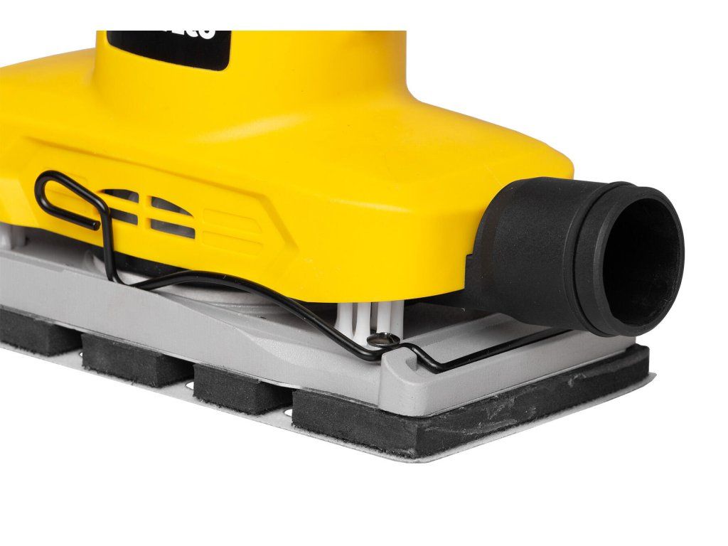 Kromě toho má tato vibrační bruska integrovanou možnost připojení prachového pytlíku nebo připojení odsavače prachu. To znamená, že při práci s nástrojem minimalizujete výření prachu a nečistot, což zlepšuje uživatelské prostředí a udržuje pracovní prostor čistý. Díky této vlastnosti se zásadně prodlužuje životnost nástroje.