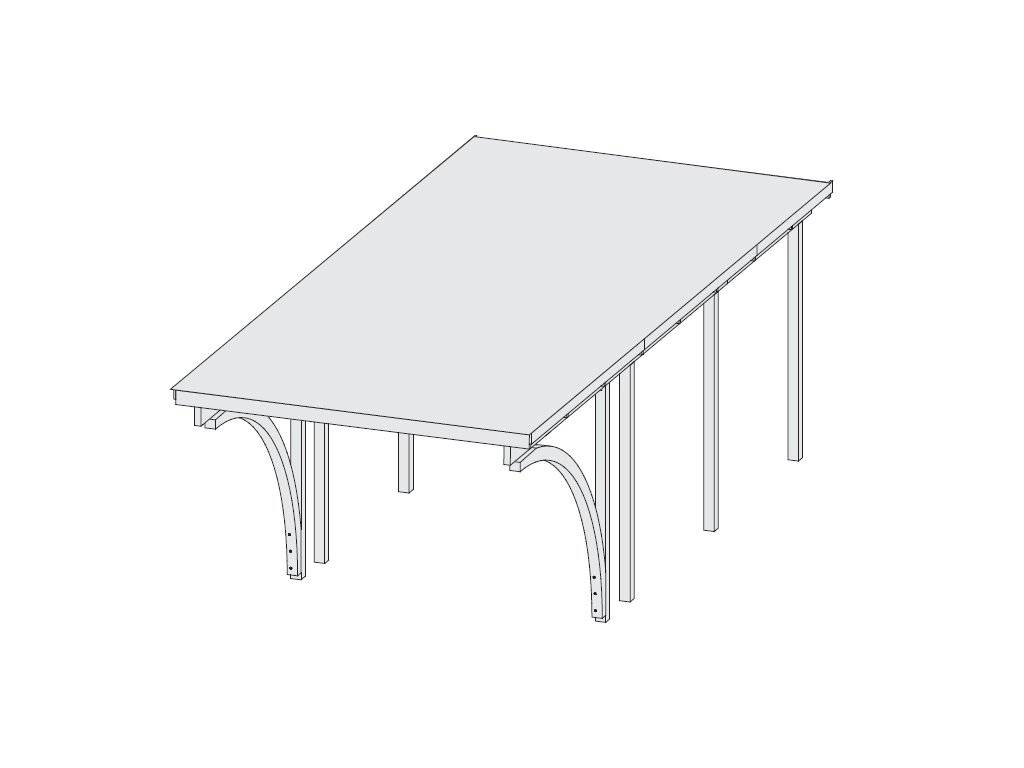 Tento model přístřešku obsahuje dva vjezdové oblouky, které výrazně ulehčují vjezd pod přístřešek z obou stran.