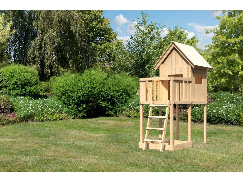 Dětské hřiště KARIBU FRIEDA poskytuje dětem spoustu možností ke hrám. Nabízí vše k tomu, aby děti mohly prožít veškeré své hrací fantazie. Stejně jako u všech našich dětských hřišť i u modelu KARIBU FRIEDA používáme výhradně to nejlepší přírodní smrkové dřevo. Hřiště má nosné sloupy o tloušťce 68 x 68 mm, stěny a podlahu z dřevěných profilů o síle 18 mm (systém pero / drážka). Terasa s domkem se nachází ve výšce 125 cm. Naše dřevo pochází ze vzdáleného severu Evropy a je chemicky naprosto neošetřené. V důsledku toho je prosté všech známých problematických látek. Díky výšce plošiny nabízí hřiště KARIBU FRIEDA dětem dokonalý výhled na zahradu. Sedlová střecha je vyrobena z dřevotřískových desek. Hřiště je standardně vybaveno robustním dřevěným žebříkem se 4 příčkami a pískovištěm pod věží. I tento výrobek má samozřejmě certifikát TÜV Nord ověřující bezpečnost výrobku (GS) podle DIN EN 71-1, DIN EN 71-3, DIN EN 71-8 a AfPS GS 2014.