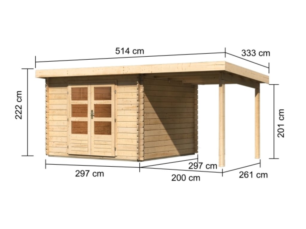 dřevěný domek KARIBU BASTRUP 5 + přístavek 200 cm (73990) natur LG2900