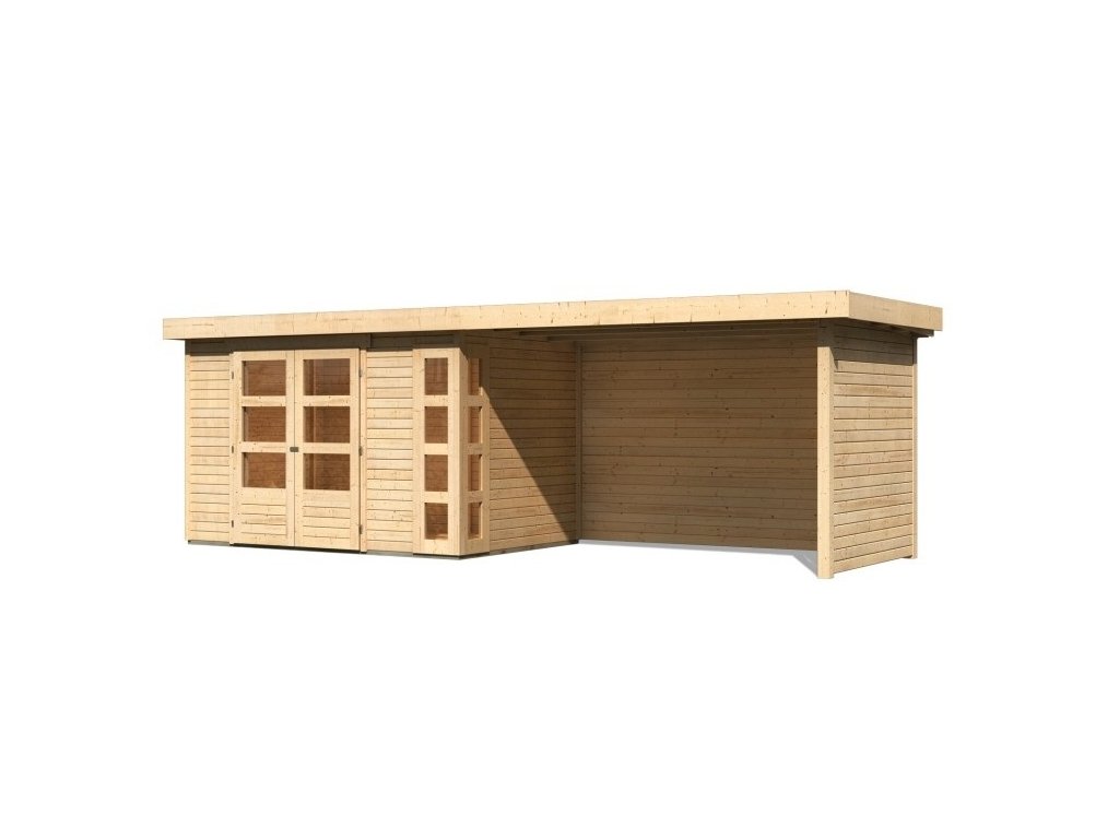 dřevěný domek KARIBU KERKO 4 + přístavek 280 cm včetně zadní a boční stěny (82946) natur LG2979