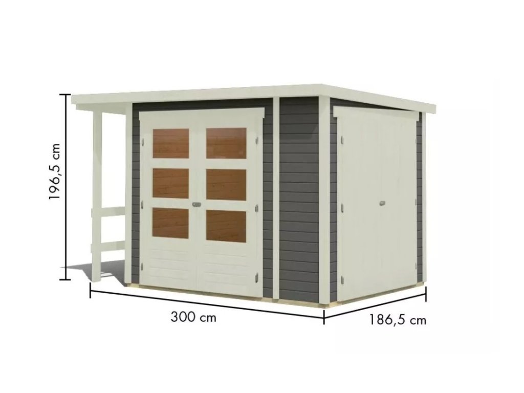 Základní model dřevěného domku pro vaši zahradu. Zvláštnost domku je integrovaná přídavná skříň na boku. Ta s rozměry ( š x h ) 57 x 179 cm nabízí dostatečný prostor pro vaše zahradní nářadí. Tento model má pultovou střechu a dvoukřídlé dveře na pantech s oknem v každém křídle. Stavebním materiálem domku jsou dřevěné profily síly 19 mm perfektně vyfrézované ze severského smrku. Dodáváme jako stavebnici v rozloženém stavu, kde stěny tvoří jednotlivé dřevěné profily, které pouze sesadíte k sobě a sešroubujete, střechu tvoří celistvá deska. To garantuje extrémně jednoduchou montáž, kterou zvládne každý český kutil.