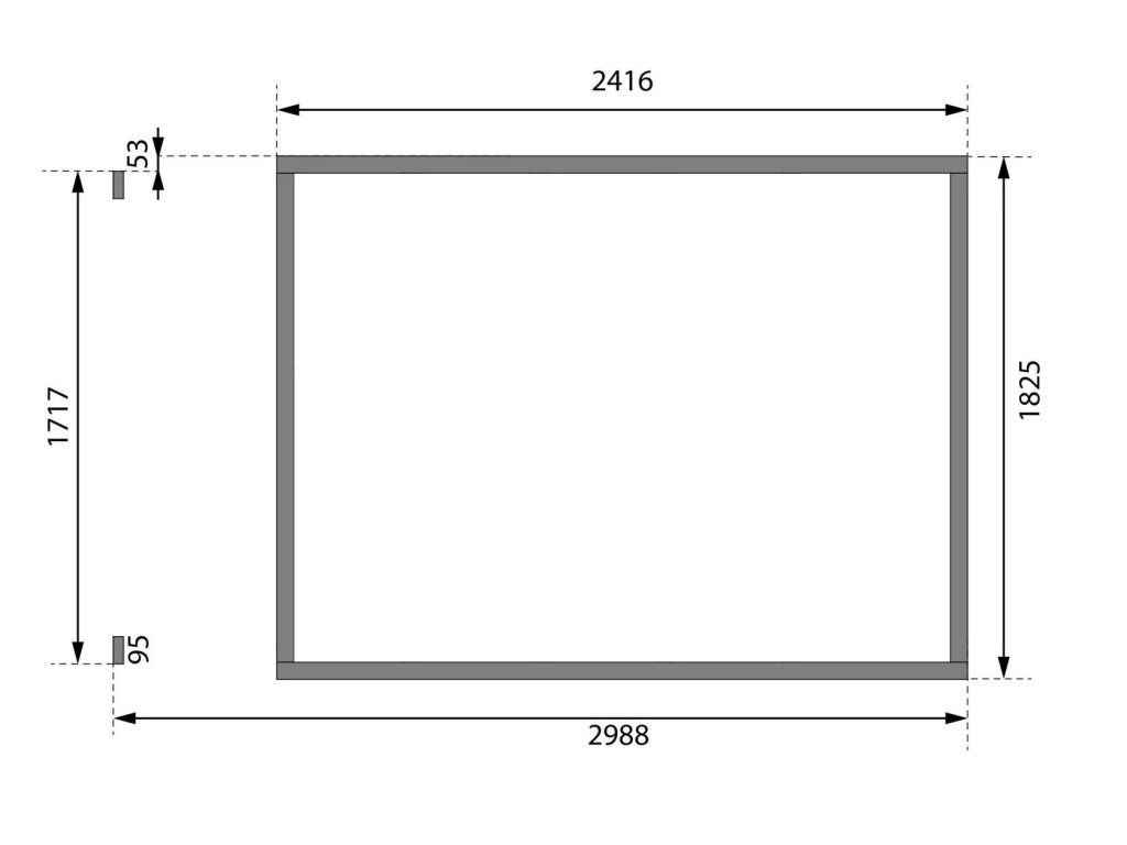 Věnujte prosím MIMOŘÁDNOU péči při budování základu pro domek. Základ postavte tak, aby horní hrana základu přesahovala asi 5 cm okolní terén. Základ musí být přesně vyvážen do vodorovné roviny a odvodněn, aby základové trámky ležely v rovině. Aby bylo zabráněno přímému kontaktu se zemí a vniknutí zemní vlhkosti do trámků, podložte nosný rošt domku pásky z bitumenové lepenky (nejsou součástí dodávky). Pro trvanlivost základu je nutno dodržet tyto nejdůležitější předpoklady - podklad, pravoúhlost a přesná rovina. S kvalitním základem vydrží domek o mnoho let déle. Nechte si poradit nebo základ zhotovit odborníkem-stavařem.