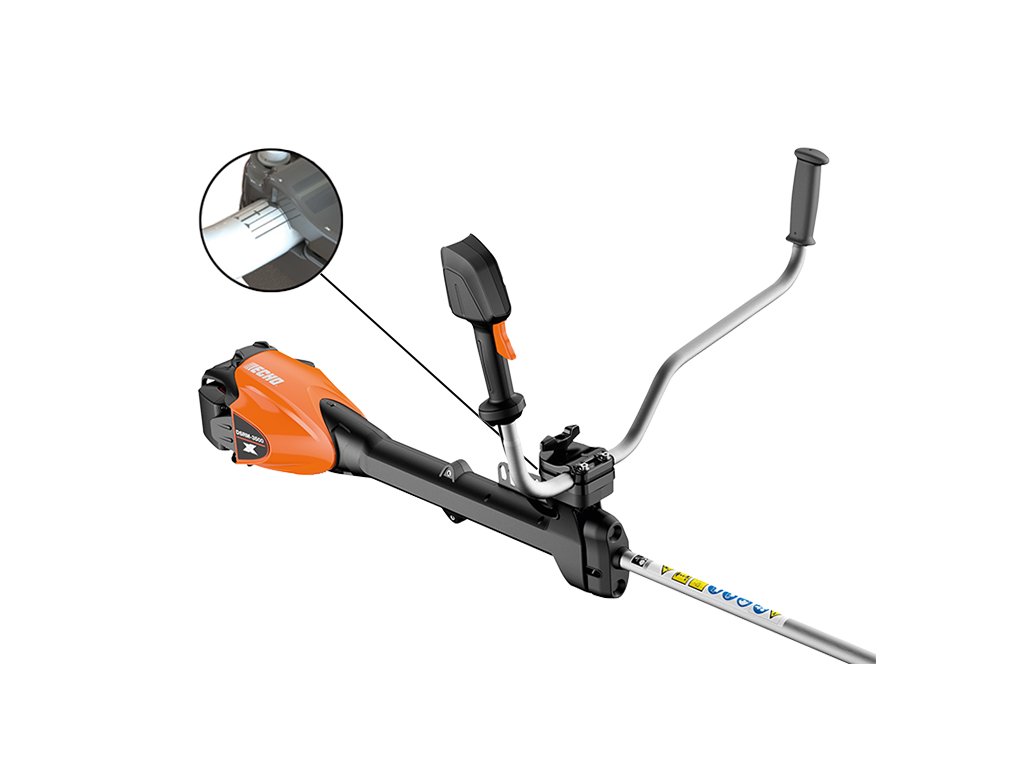 DSRM-3500U sdílí pevnou hnací hřídel a robustní převodovku s benzínovými modely ECHO, což zajišťuje odolnost při dlouhodobém používání v náročných podmínkách. Povrchová úprava alumite odolná proti poškrábání chrání hřídel i rukojeti. Integrovaný závěsný hák a držák rukojeti s paměťovými značkami výrazně usnadňují přípravu stroje k práci po skladování. Stroj je vybaven žací hlavou SF400 a širokým záběrem 40,64 cm (16"), což umožňuje rychlé doplňování struny a efektivnější pokrytí plochy – profesionálové tak mohou pracovat rychle a s jistotou.