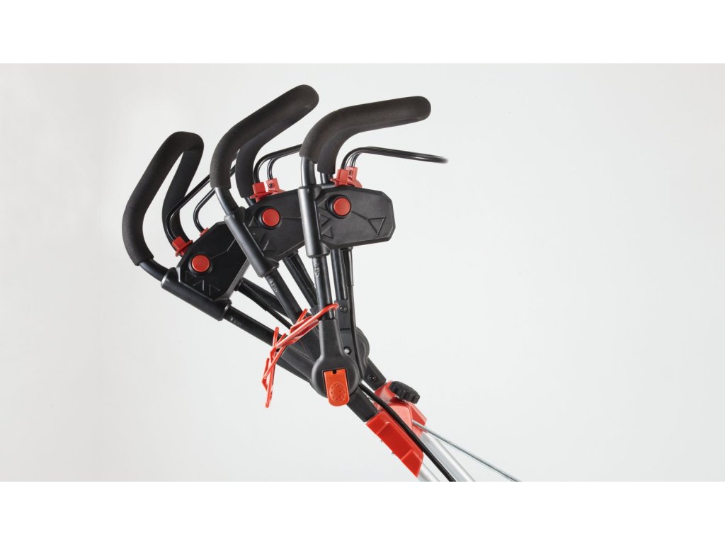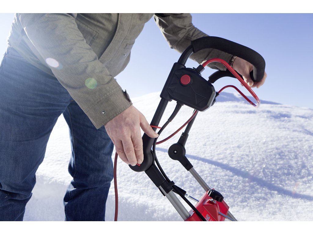 Silný 230V/2000kW motor se spouští pomocí bezpečnostního spínače na držadle. Čistící lopatky jsou vyrobeny z tvrzené gumy s ocelovými výztuhami. Sníh je odhazován až do vzdálenosti 10 m a usměrněn vyhazovací šachtou otočnou v rozsahu 190 stupňů. Výšku držadla lze pomocí rychloupínačů snadno přizpůsobit výšce obsluhy. Praktický úchyt usnadňuje přenášení frézy. A pokud právě není potřeba, díky sklopnému držadlu jí můžete snadno skladovat na malém prostoru.