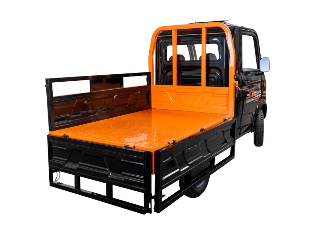 Pro zvýšení bezpečnosti je elektrický pickup vybaven kombinovaným brzdovým systémem – s kotoučovými brzdami vpředu a bubnovými vzadu. Tato konfigurace zajišťuje výbornou bezpečnost, efektivitu a dlouhou životnost, čímž nabízí spolehlivé a vyvážené řešení pro lehké přepravní potřeby.
