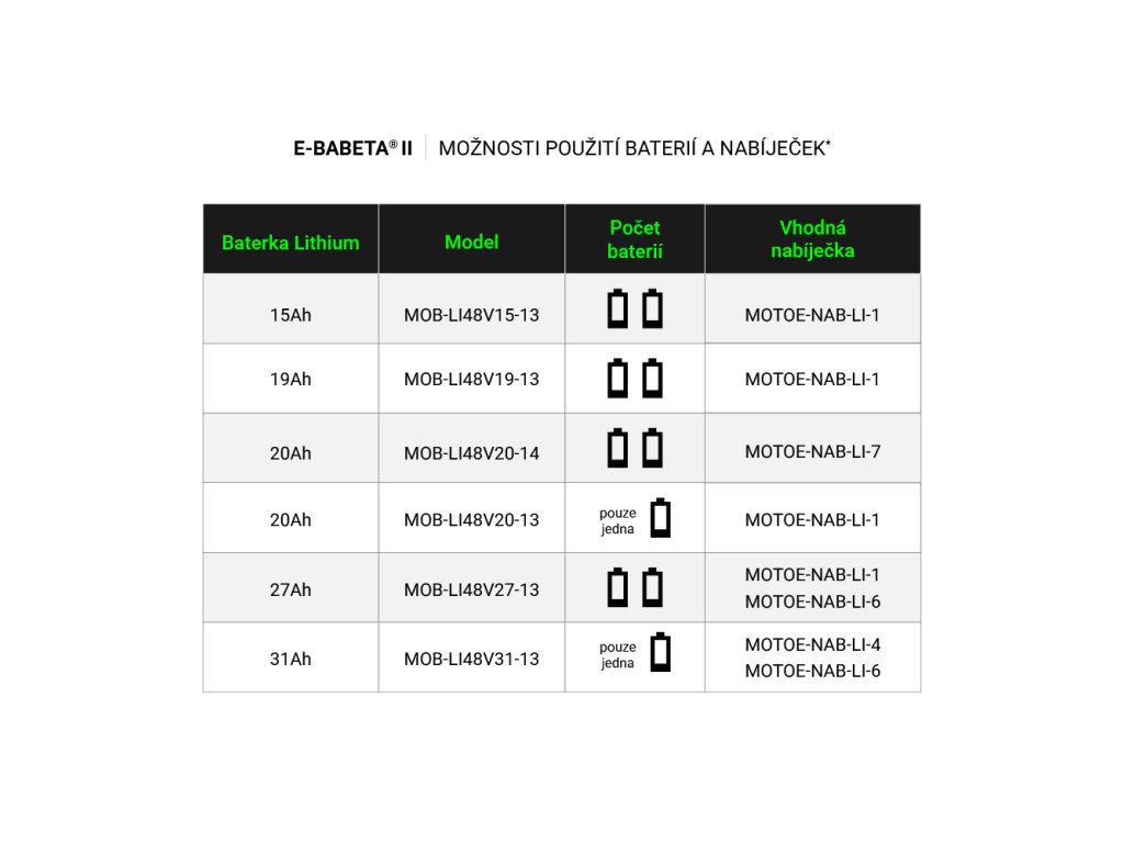 - Skútr je vybaven už jen LITHIOVOU vyjímatelnou baterií o kapacitě 20,8 Ah, kterou si můžete odnést domů nabít, je však možnost dokoupit a zaměnit za lithiovou baterii 40 Ah s dojezdem až 100 km