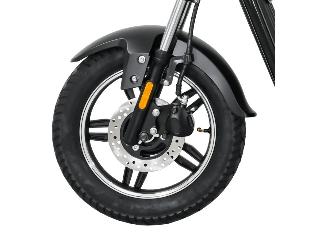 - Vybaven motorem o výkonu 1000 W a maximální rychlost je elektronicky omezena na 38 km/h