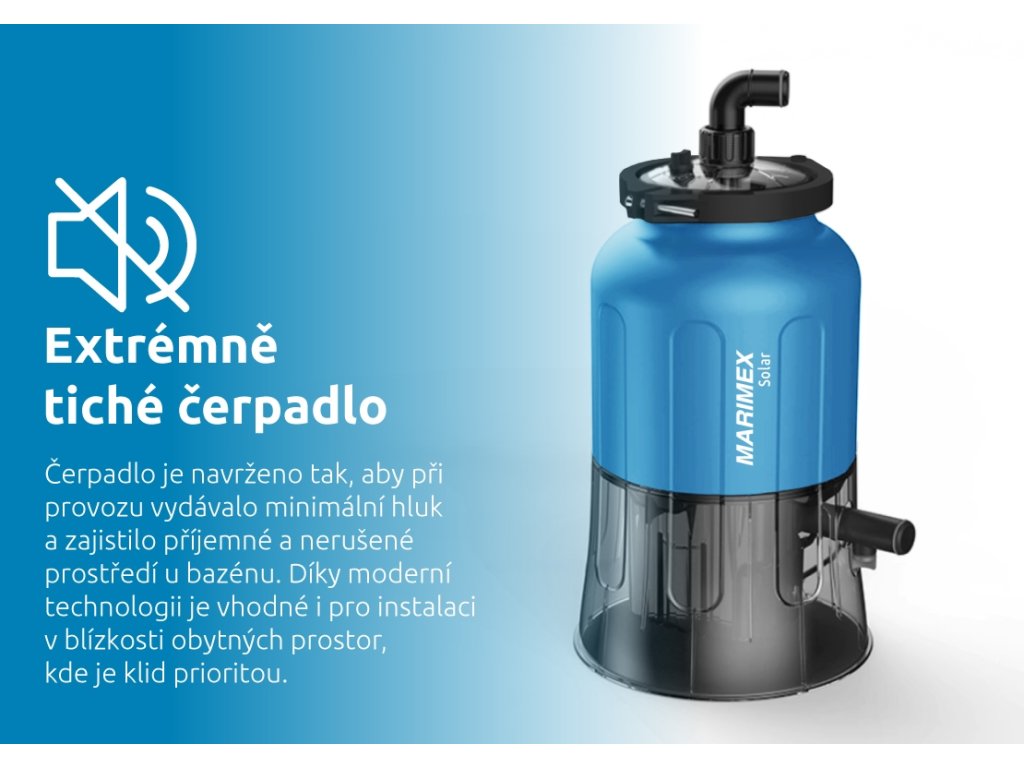 Extrémně tiché čerpadloČerpadlo je navrženo tak, aby při provozu vydávalo minimální hluk a zajistilo příjemné a nerušené prostředí u bazénu. Hladina hlučnosti je pouhých 35 dB, což odpovídá mluvenému slovu. Díky moderní technologii je filtrace vhodná i pro instalaci v blízkosti obytných prostor, kde je klid prioritou. |