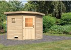Venkovní finská sauna, stěna 73 mm, vnější rozměry š 220 x h 217 x v 244 cm, určeno pro 2 osoby.