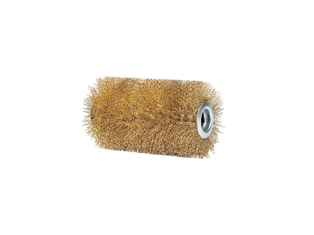 Ocelový drátěný kartáč s mosaznou vrchní vrstvou (průměr 100 mm, délka 165 mm) k důkladnému vyčištění kamenných povrchů. Vhodný k odstranění tvrdošíjných nečistot, jako jsou lišejníky na necitlivých/robustních površích. Nevhodný pro leštěné, broušené nebo ochranným nátěrem opatřené povrchy z přírodního či umělého kamene.