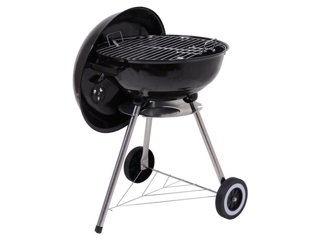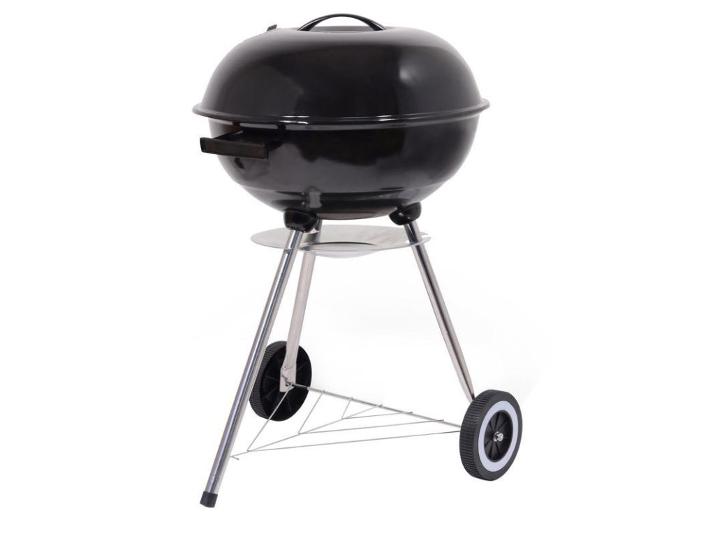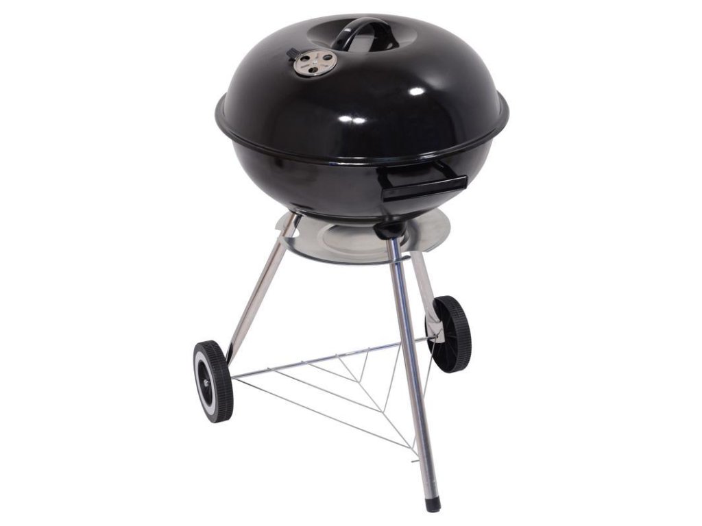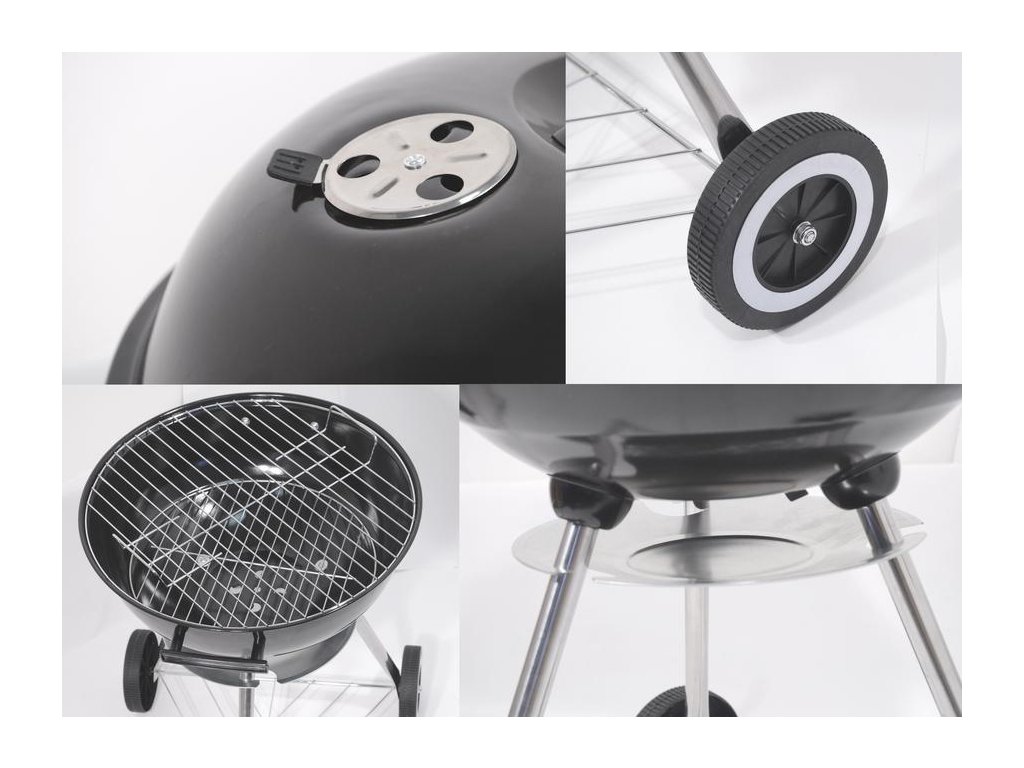 Konstrukce grilu je vyrobena z kvalitního ocelového plechu se smaltovanou povrchovou úpravou, která zajišťuje dlouhou životnost a snadnou údržbu. Chromovaný grilovací rošt poskytuje dostatek prostoru pro tepelnou přípravu pokrmů. Regulovatelná ventilace umožňuje přizpůsobit proudění vzduchu a regulovat teplotu během grilování. Odnímatelné víko je z vnitřní strany opatřeno hákem pro pohodlné zavěšení. Stabilitu zajišťují tři kovové nohy se zpevňujícím rámem a snadnou manipulaci umožňují plastová kolečka.