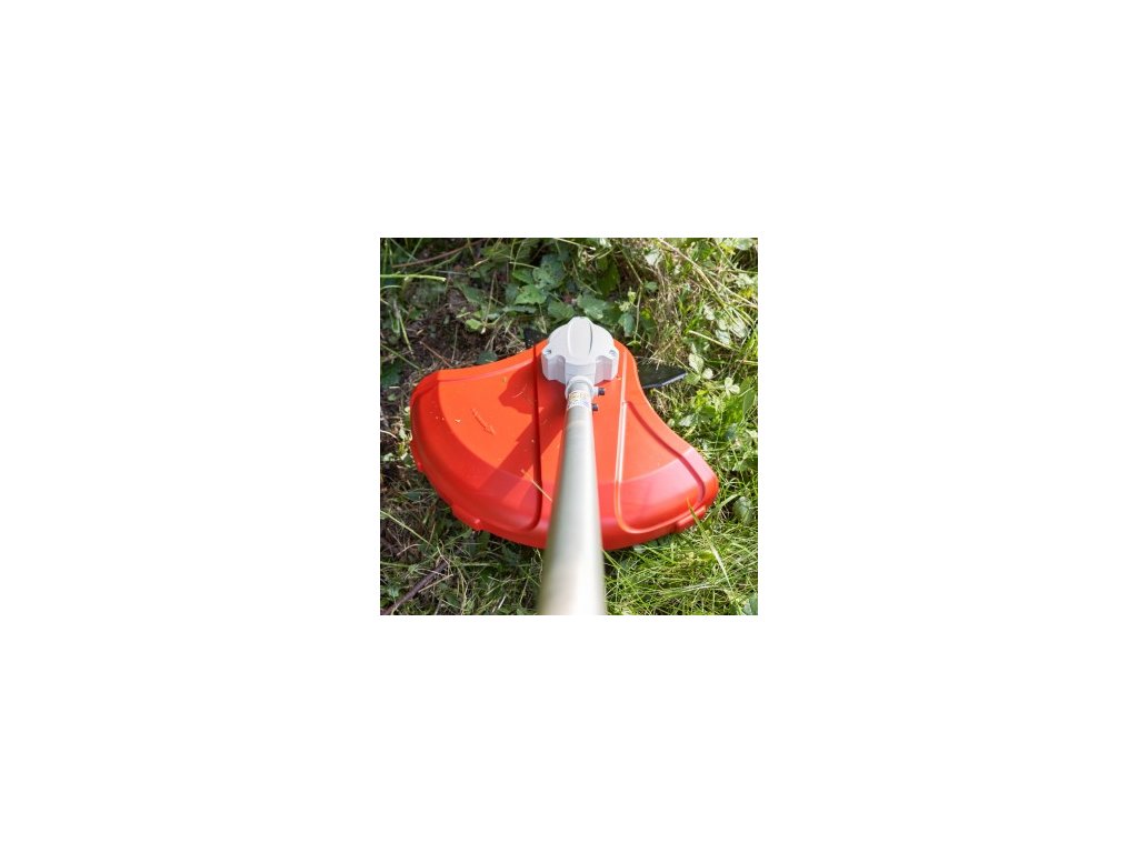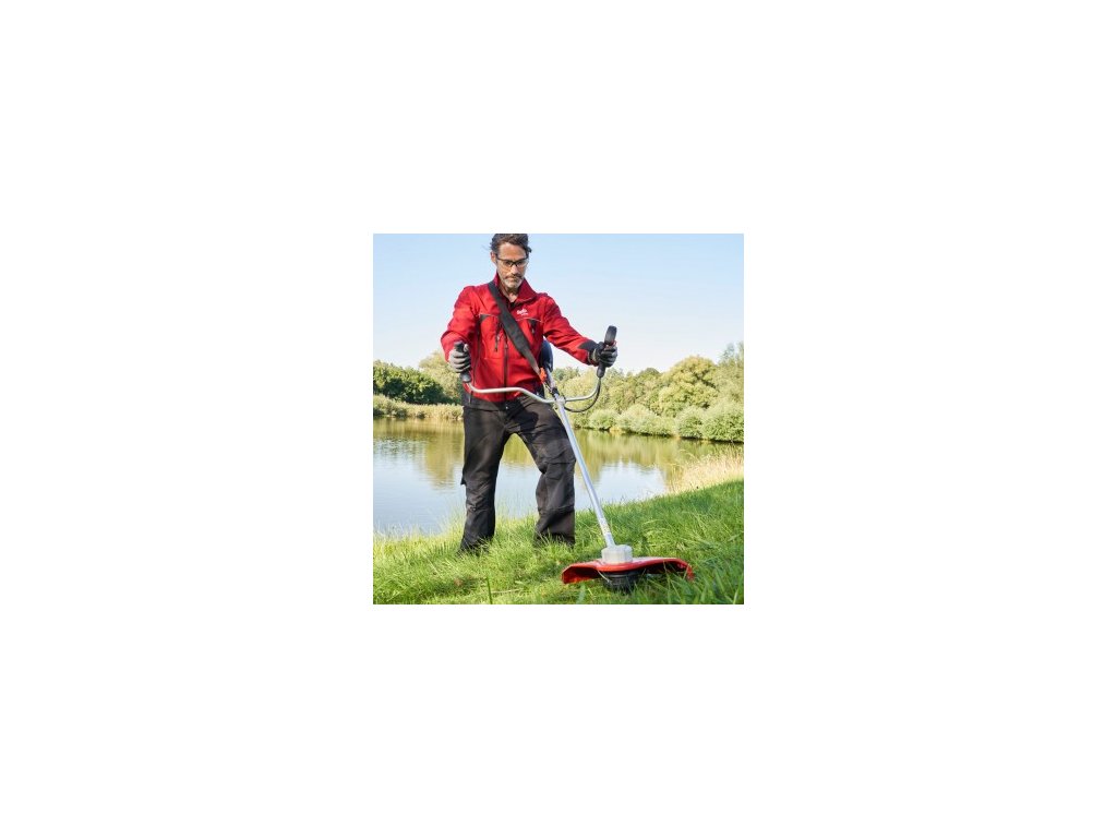 Vyvážený design, ergonomicky tvarované rukojeti a provoz s nízkými vibracemi zaručují práci bez únavy. Normální rychlost lze změnit z Eco na Power pomocí posuvného knoflíku. Včetně strunové hlavy Fast & Easy (pracovní šířka 36 cm) pro snadnou výměnu a rychlé navíjení řezné struny bez montování. Součástí je také robustní 3-zubý kotouč se šířkou záběru 25,5 cm pro použití v náročnějším terénu.
