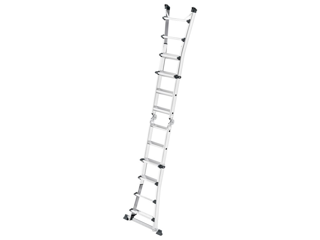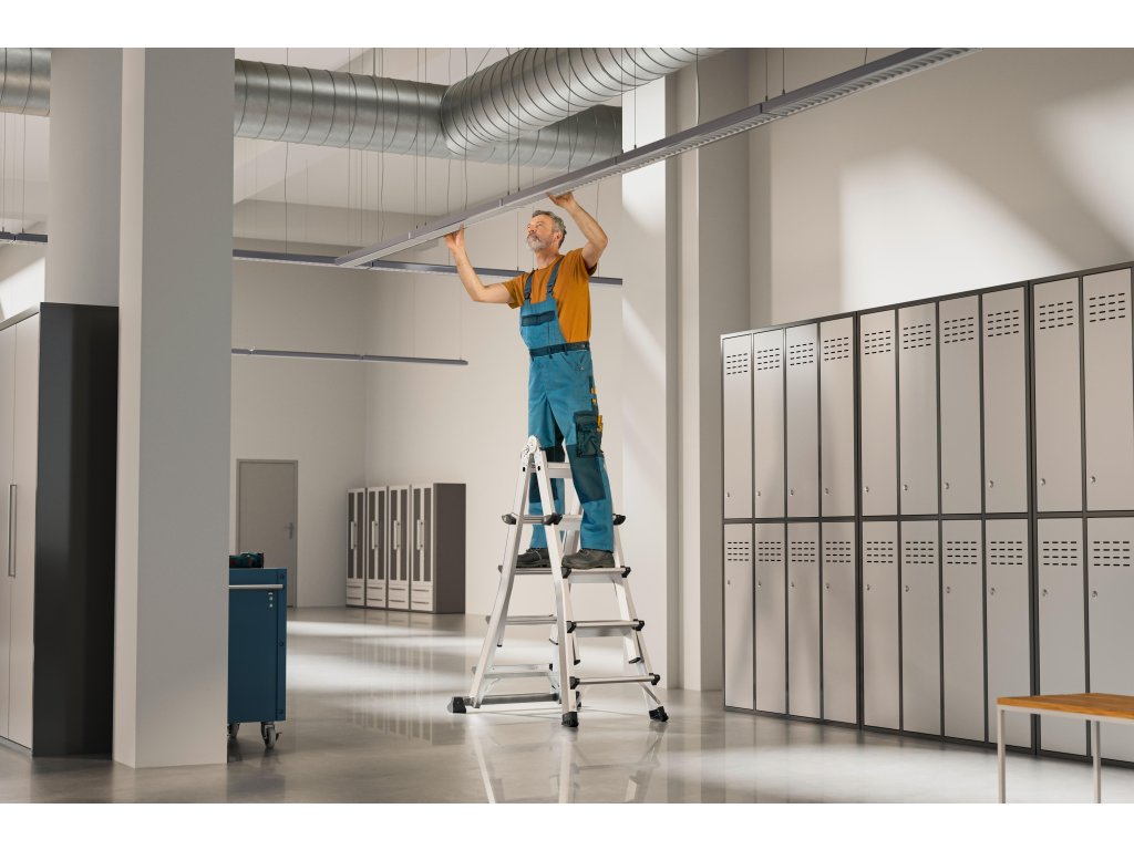 - Použitelný jako příložný, výsuvný žebřík, oboustranně schůdný žebřík a schodištní žebřík
