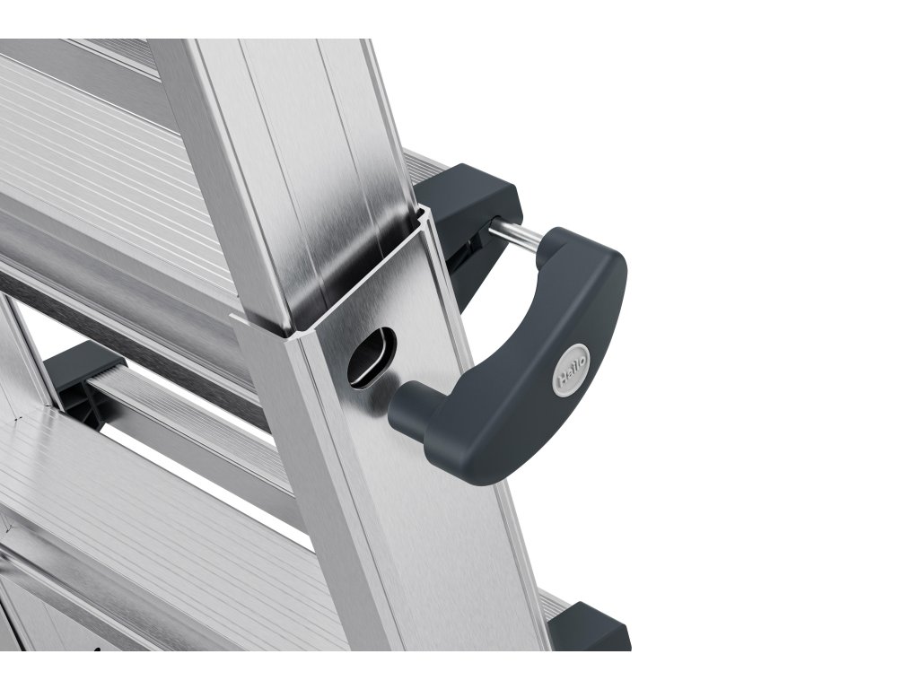 - 2 bezpečnostní klouby (lze zajistit a odjistit) pro nastavení jako štafle nebo příložný žebřík