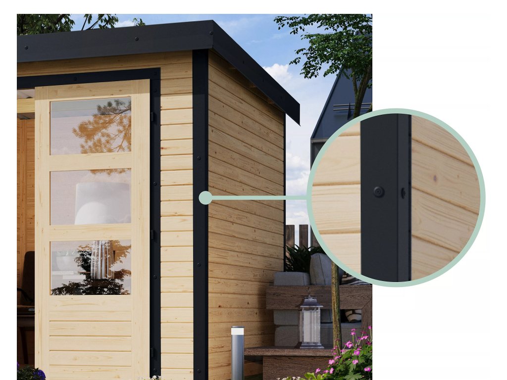 Unikátní hybridní zahradní domek PLUTO B spojuje optimálním způsobem výhody přírodního dřeva a odolného kovu. Jeho konstrukce využívá vysoce kvalitní materiály, včetně severského smrku pro teplý a příjemný vzhled, ocelových rohů pro pevnost a odolnost, a střechy z trapézového plechu pro maximální ochranu před povětrnostními vlivy.