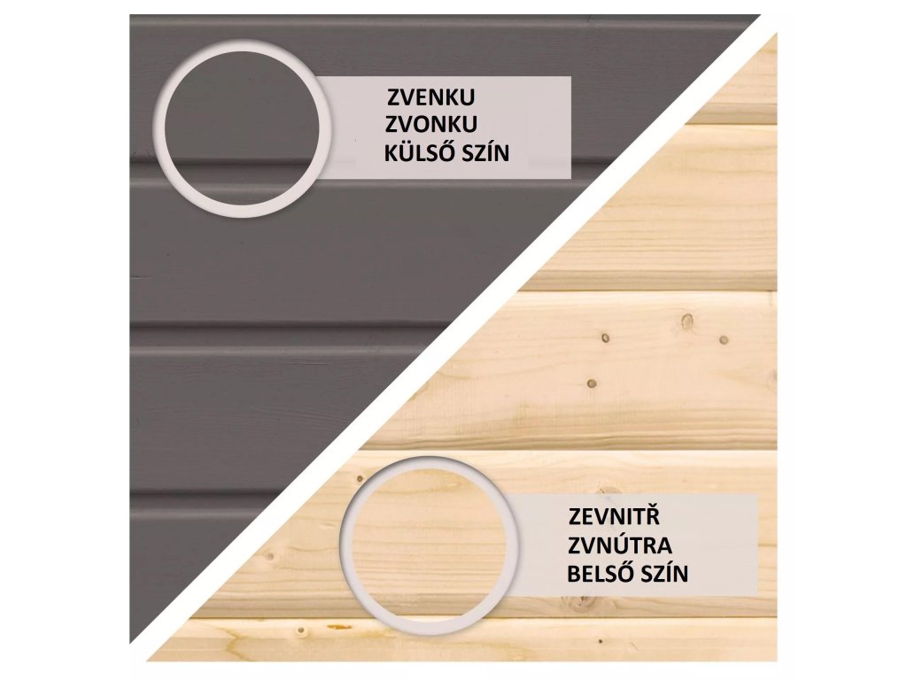 - Profesionální KARIBU FARBSYSTEM - dřevěné profily jsou z vnější strany již ve výrobě opatřeny kvalitní vodoodpudivou barvou, která ochrání dřevo před vlivem UV záření a počasí. Vnitřní strana zůstává vždy v přírodním neošetřeném stavu. KARIBU FARBSYSTÉM sebou nesou jistou počáteční investici, ale v konečném důsledku velkou úsporu času, práce i peněz.
