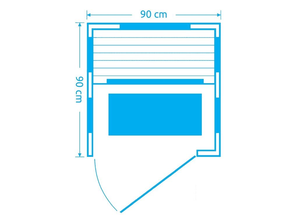 Skleněné dveře umožňují pohodlný výhled po okolí sauny. Součástí výbavy je ionizér a rádio/mp3 přehrávač.