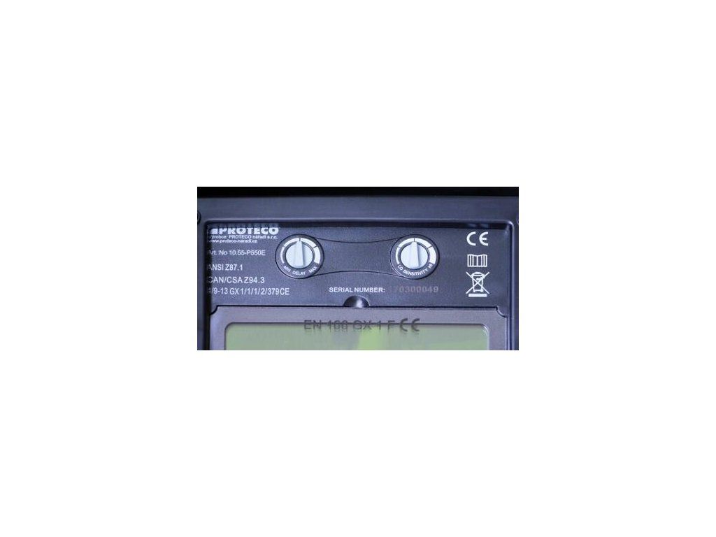Svářecí kukla Proteco by neměla chybět na hlavě žádného svářeče. Kukla s velikostí zorného pole 93 x 43 mm je určena nejen pro ochranu očí během svařování, ale také pro broušení. Svářecí kukla je osazena filtrem se 2 snímači, který je napájen solárním článkem a dvěma vyměnitelnými lithiovými bateriemi CR2032. Citlivost snímačů a ztmavení filtru (DIN 9 - 13 - dle metody sváření), jsou nastavitelné za pomocí ovladačů vně kukly. Čas zpoždění rozjasnění kukly od oblouku je možné nastavit plynule od 0,1 do 1s.