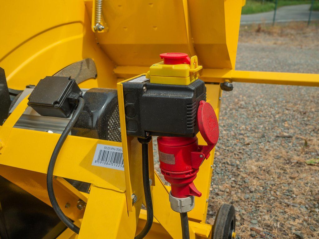 Pila je vybavena několika moderními bezpečnostními prvky, které zajišťují maximální ochranu a minimalizují riziko úrazu. Klíčovým prvkem je bezpečnostní vypínač, který se aktivuje při uzavření krytu podavače. Když je kryt otevřen, není možné tlačit kolébku proti kotouči, což zabraňuje nebezpečným situacím. Tvar podavače byl navržen tak, aby zabránil otočení polena a předešlo se tak neočekávaným pohybům. Pružinový systém následně zajistí automatický návrat podavače do původní polohy, po uříznutí špalku (bez vylézajícího kotouče). Důležitou součástí je rovněž účinná brzda, která zastaví kotouč hned po vypnutí pily. V neposlední řadě je pila konstruovaná s ohledem na robustnost, s použitím svařovaných ocelových profilů a stojny, což zajišťuje maximální odolnost vůči překlopení během práce.