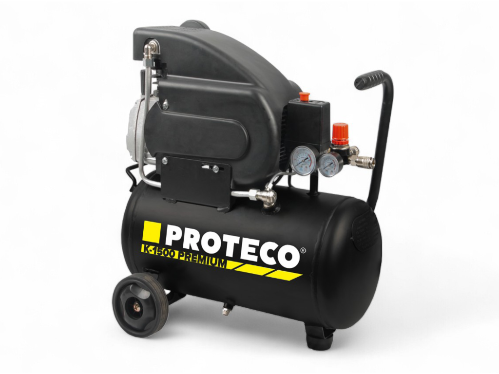 Olejový kompresor PROTECO PREMIUM 1,5 kW s objemem vzdušníku 24 L je špičkovým partnerem pro domácí a řemeslné dílny, garáže i další náročnější aplikace. Jednoválcový motor slouží k výrobě stlačeného vzduchu a následně pohonu pneumatických nástrojů a nářadí, nebo nafukování pneumatik, míčů, dětských bazénků, míčů a podobně. Kompresor má dostatečný výkon 1,5 kW (postaru 2 koňské síly) k pohonu běžného dílenského pneumatického nářadí.