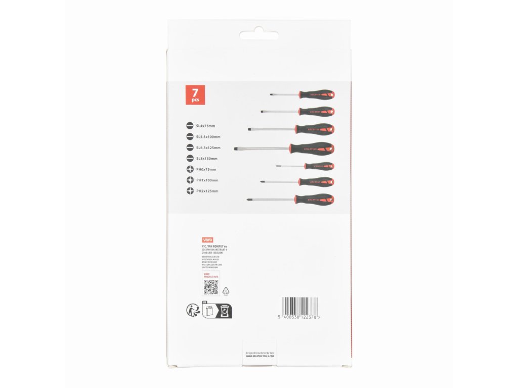 Tato sada se 7 šroubováky KRTH20002 z naší řady Kreator je vyrobena z chrom-vanadiové oceli a šroubováky mají magnetický hrot, takže můžete snadno upevnit každý šroub. Sada obsahuje ploché šroubováky a také šroubováky PH. Měkká ergonomicky tvarovaná protiskluzová rukojeť zajišťuje pevný úchop.Obsah balení: