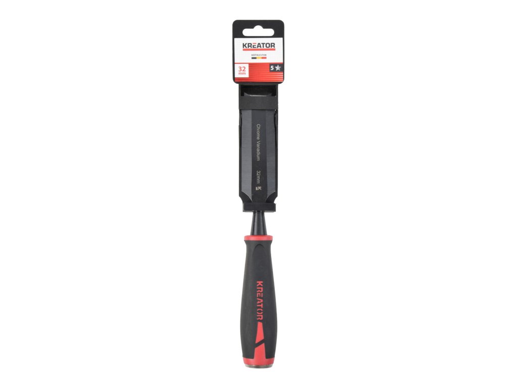 Dláto na dřevo je nezbytné pro každého kutila, který pracuje se dřevem. Toto malé dláto KRTH23708 z naší řady Kreator o průměru 32 mm je ideální pro detailní práci. Díky robustní úderové hlavě v zadní části dláta můžete snadno použít kladivo pro vynaložení větší síly. Měkká protiskluzová rukojeť poskytuje pevný úchop.Obsah balení: