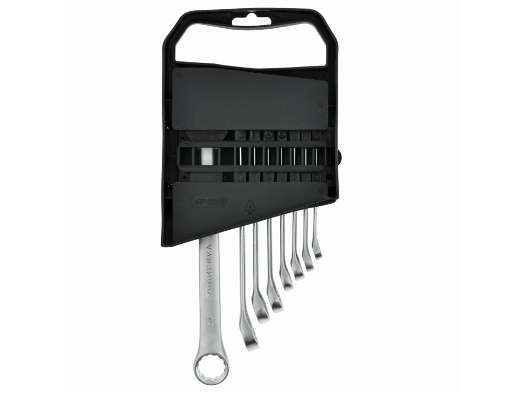 Toto je 8-dílná sada očkových i otevřených klíčů KRTH30007 od Kreator. Každý klíč má jeden otevřený a jeden očkový konec stejné velikosti. Největší velikost je 19 mm. Mírně odsazené očka zajišťují efektivnější přenos vyvíjené síly. Jsou vyrobeny z vysoce kvalitní chrom-vanadiové slitiny.