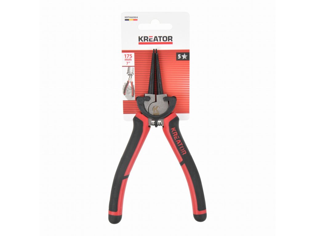 Tyto kleště na pojistné kroužky KRTH60904 z naší řady Kreator mají délku 175 mm a jsou ideální pro upevňování nebo odstraňování vnější pojistných kroužků. Jsou vyrobeny z robustní uhlíkové oceli a její měkké gumové rukojeti poskytují pevný, protiskluzový úchop a pohodlné používání.Obsah balení: