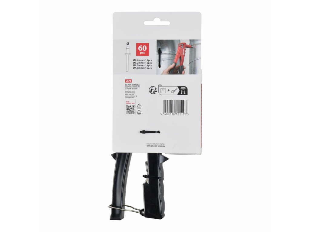 Tyto nýtovací kleště KRTH62601 od Kreator se dodávají se 4 různými nástavci a 60 nýty, 15 na každý nástavec. Nástavce jsou snadno vyměnitelné. Tyto kleště používejte k snadnému spojování hliníkových nebo plastových předmětů bez použití šroubů. Kleště s ergonomickými rukojeťmi jsou navrženy pro pevný, ale pohodlný úchop, který vám umožní vyvinout maximální sílu. Naprosto nýtovací!