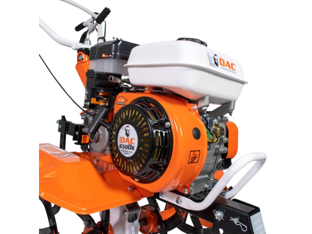 - Poloprofesionální benzínový kultivátor DAC 6500K umožňuje připojení široké škály příslušenství, jako je pluh na jednu radlici, vertikutátor, vyorávač brambor, kultivátor, radlice na sníh, bubnový systém sečení, secí stroje, kovová nebo pryžová kola, přívěs s nosností až 500 kg.