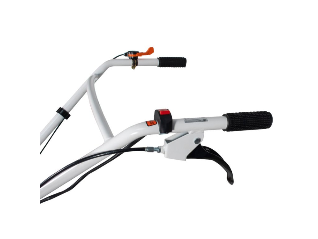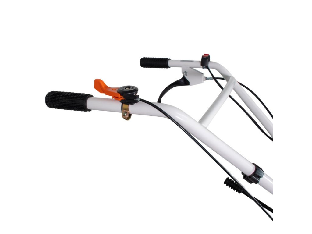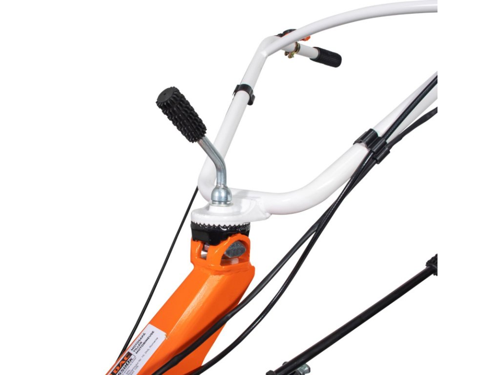- Přestože kultivátor váží 80 kg, snadno se s ním manipuluje díky nastavitelným kovovým madlům a gumovým rukojetím, které jsou určeny k tlumení vibrací generovaných kultivátorem.