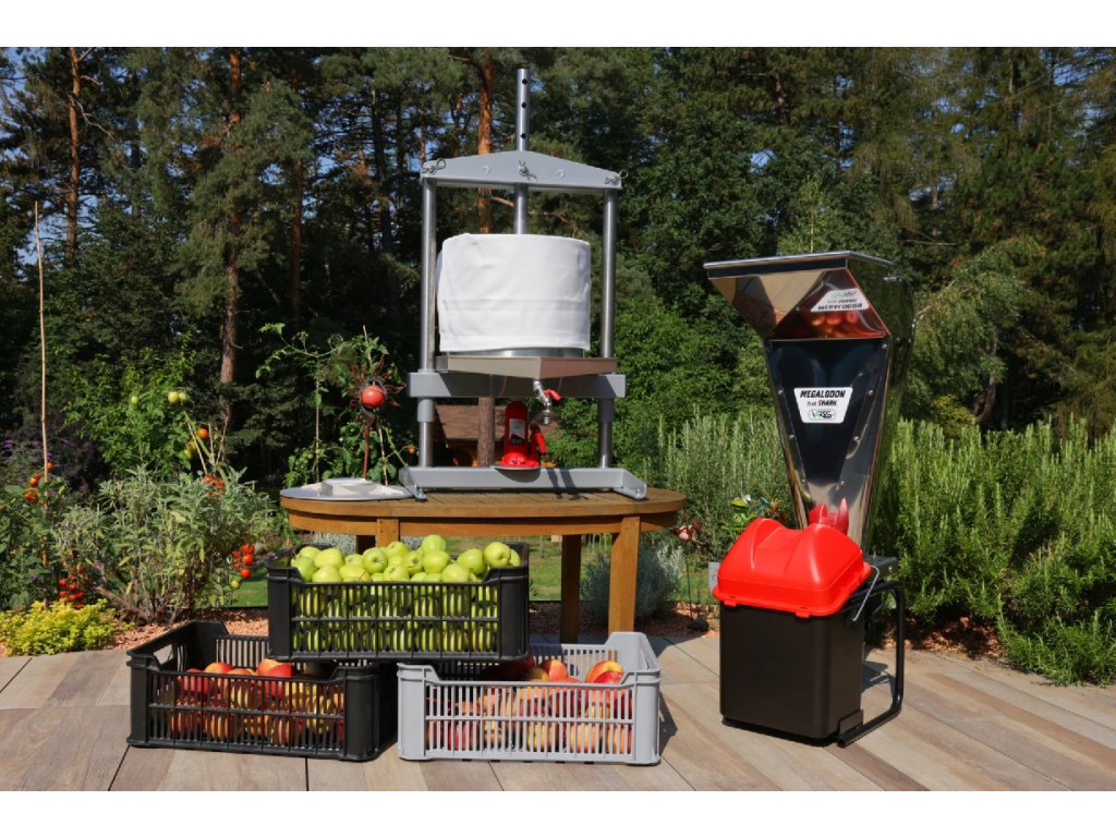 Kombinace výkonného drtiče ovoce a našeho nového lisu s 6t přítlakem pro nejnáročnější uživatele. Vyrobené z nerezi jsou oba ideální pomocníci pro každoroční moštování.