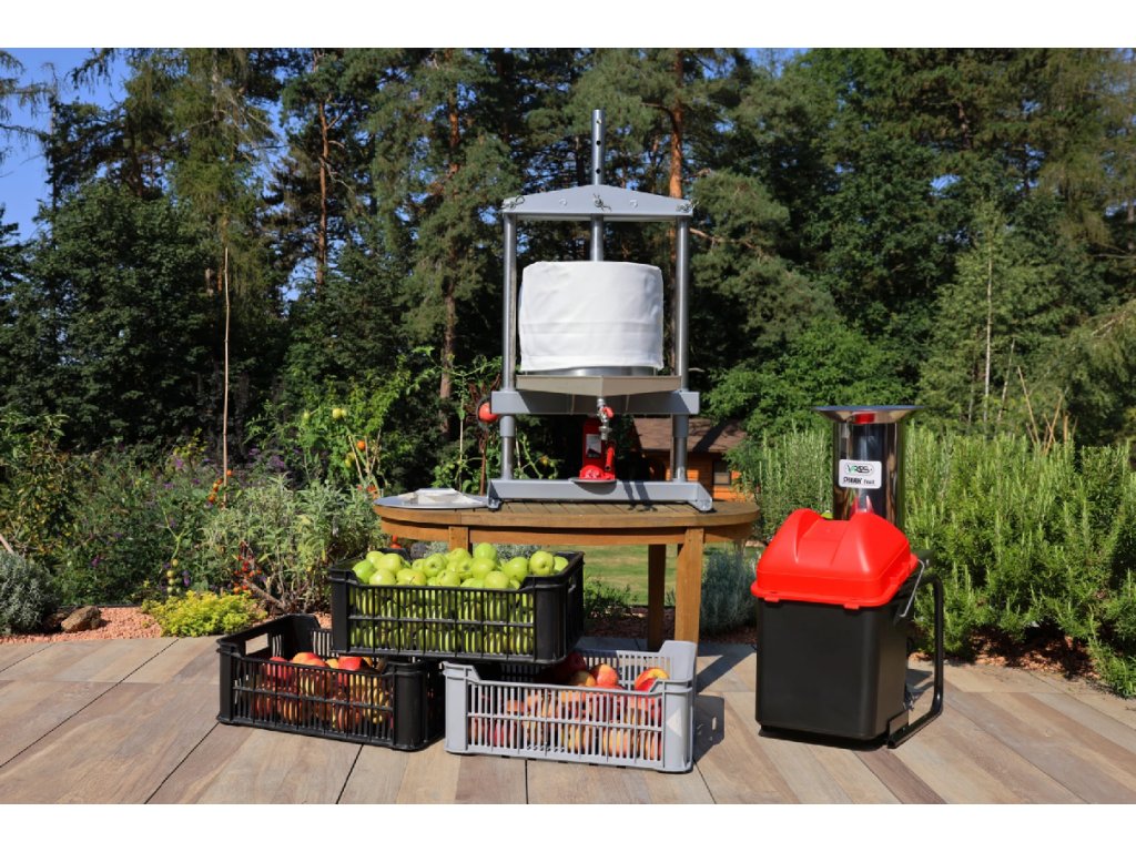Kombinace výkonného drtiče ovoce a našeho nového lisu s 6t přítlakem pro nejnáročnější uživatele. Vyrobené z nerezi jsou oba ideální pomocníci pro každoroční moštování.