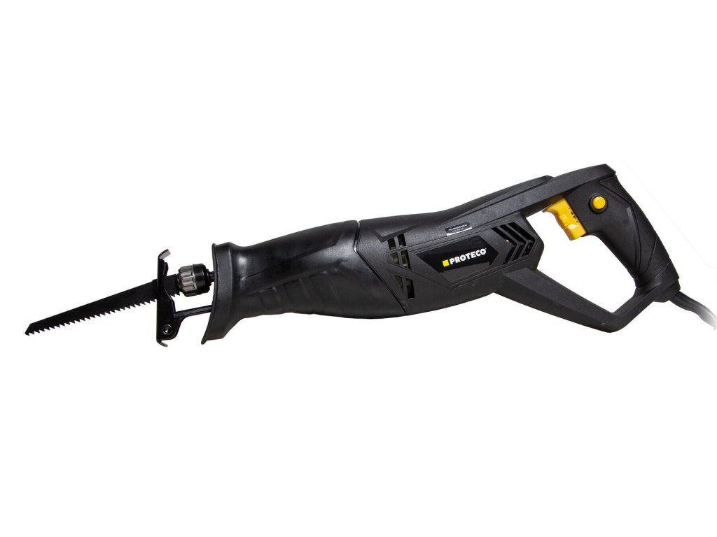 Pila mečová Proteco je ideálním řešením pro snadné a rychlé řezání dřeva, umělé hmoty a dalších materiálů doma, v dílně i na zahradě. Silný elektromotor pohání pilový list přes ocelový převod se šnekovým ozubením. Počet kmitů lze regulovat plynule vypínačem. Pevné tělo pily je opatřeno pryžovým návlekem v místě rukojetí, a spolu s zadní rukojetí je tak práce pohodlná i v hůře přístupných prostorech.