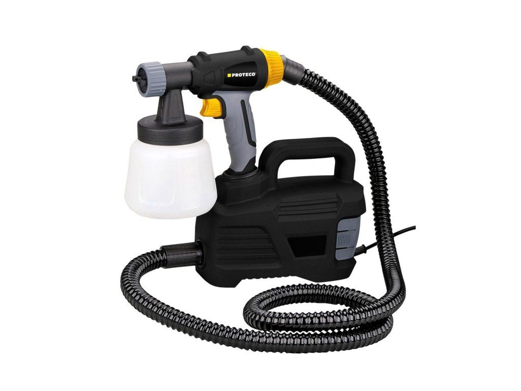 Pistole stříkací vzduchová s kompresorem 800 W Proteco je lehký mobilní stříkací systém vhodný pro použití v interiérech i exteriérech. Pistole je určena k stříkání různých druhů barev, laků - olejových, syntetických i na vodní bázy, lazur a latexových barev.