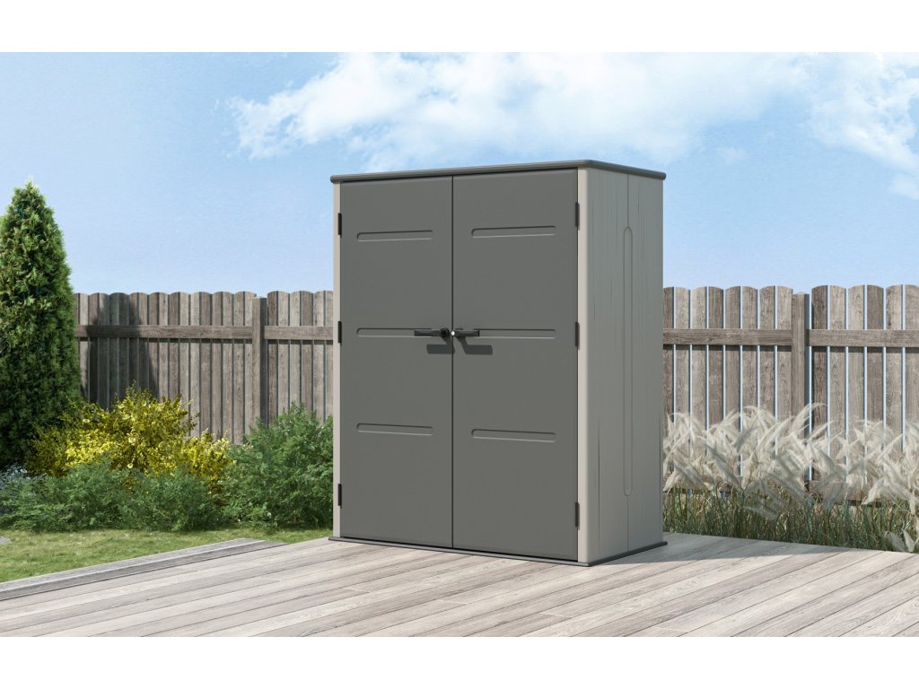 Plastový úložný box "nové generace" k uskladnění polstrů a zahradních potřeb. Praktický design, snadná montáž, celoroční použití. Box má nosnou kovovou konstrukci a stěny, střecha, dvojité dveře, podlaha jsou vyrobeny z masivního velmi odolného a prakticky nerozbitného plastu. (HDPE - vysokopevnostní polyetylen s UV filtrm). Plastová protiskluzová podlaha je součástí boxu (je v ceně). Box je vybaven doukřídlými dveřmi na pantech. Síla dvojité plastové stěny je 22 mm, síla střechy je 34 mm. Materiál boxu nežloutne ani nekřehne, takže odpadá jeho pravidelné natírání, což je nutné v případě např. dřevěných nebo železných boxů - box je tak prakticky bezúdržbový. Box je navržen a vyroben tak, aby montáž byla co nejjednodušší a nejkratší. Jednotlivé díly pouze zaklapnete do sousedních dílů a spoj zajistíte šroubkem.