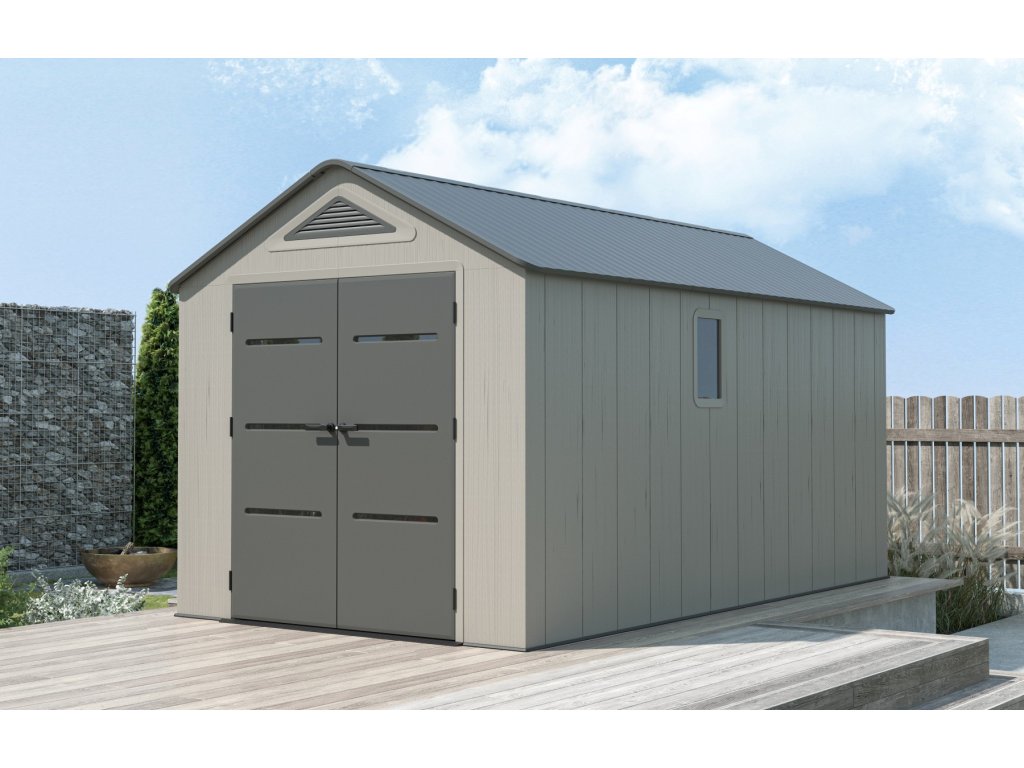 Robustní plastový domek "nové generace" k uskladnění zahrádkářských, sportovních, bazénových, grilovacích, campingových, motoristických a dalších potřeb. Moderní design, snadná montáž, celoroční použití. Zahradní domek má nosnou kovovou konstrukci a dvojité stěny, střecha, dvojité dveře, podlaha jsou vyrobeny z masivního velmi odolného a prakticky nerozbitného plastu. Plastová protiskluzová podlaha je součástí domku (je v ceně). Domek je vybaven dvoukřídlými dveřmi na pantech. Síla dvojité plastové stěny je 22 mm, síla střechy je 36 mm. Sklon střechy je 30o, což výrazně snižuje množství a tlak sněhu na střechu. Materiál domku (extrémně odolný polyethylen s UV filtrem) nežloutne ani nekřehne, takže odpadá pravidelné natírání domku jako je nutné v případě např. dřevěných domků - zahradní plastový domek je prakticky bezúdržbový. Domek je navržen a vyroben tak, aby montáž byla co nejjednodušší a nejkratší. Jednotlivé díly pouze zaklapnete do sousedních dílů a spoj zajistíte šroubkem.