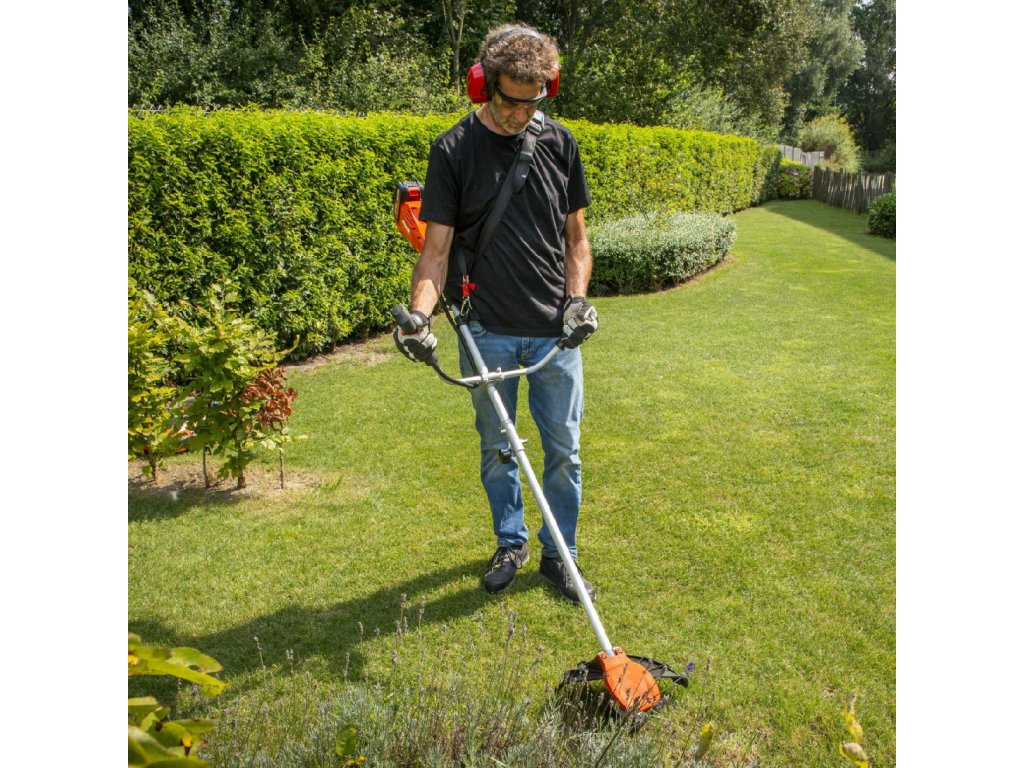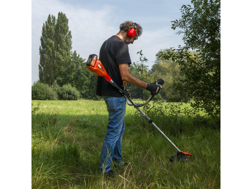 I přes velmi silný motor cítíte při práci jen velmi malé vibrace, protože křovinořez DualPower má systém redukce vibrací. Stroj je dodáván bez baterie a nabíječky. Použít můžete baterie ze série DUAL POWER o napětí 40V.