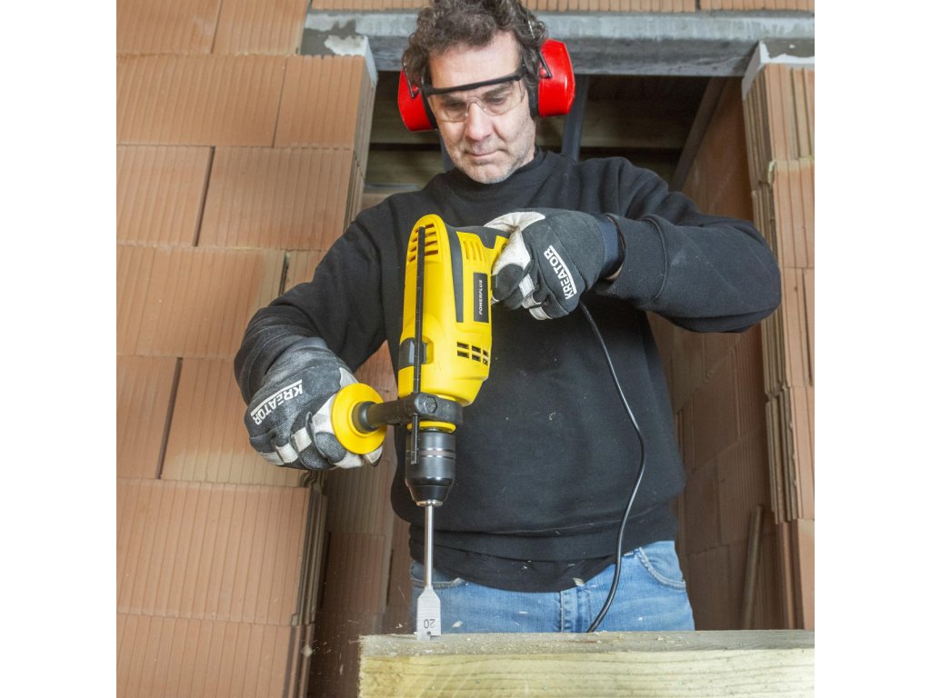 Používejte tuto příklepovou vrtačku s výkonem 1050 W k vrtání otvorů do tvrdých materiálů, jako je dřevo, ocel a beton. Pokud vrtání není dostatečně výkonné, můžete zapnout funkci příklepu tohoto stroje jednoduchým posunutím spínače. Dokáže vrtat až 13 mm do oceli, 16 mm do betonu a až 35 mm do dřeva.