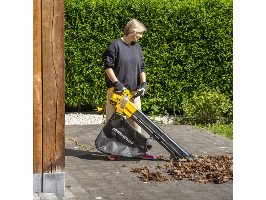 Výkonný elektrický vysavač, foukač listí POWXG4039 od Powerplus pro rychlé a efektivní čištění zahrady. S výkonem motoru 3 800W a maximální rychlostí vzduchu 320 km/h odstraníte spadané listí z trávníku během okamžiku a znovu si užijete upravenou zahradu.