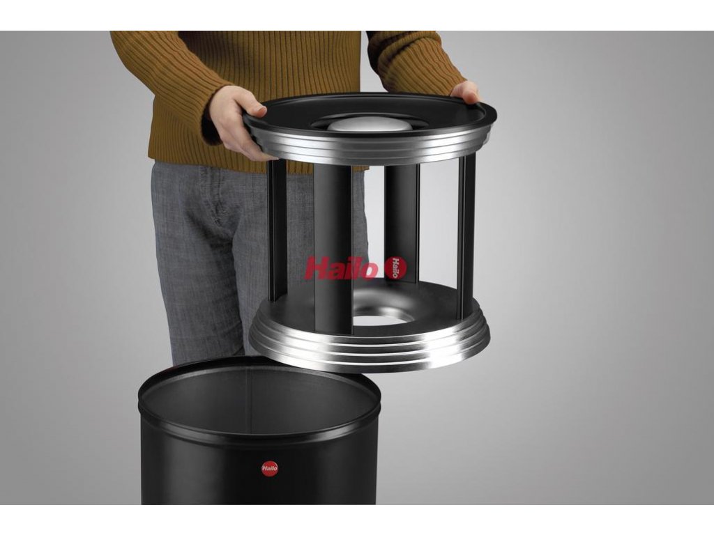 Popelník a víko odpadkového koše je z ušlechtilé oceli 4301 , otryskané skleněnými perlami a elektrolyticky leštěné –povrch je odolný vůči otiskům prstů
