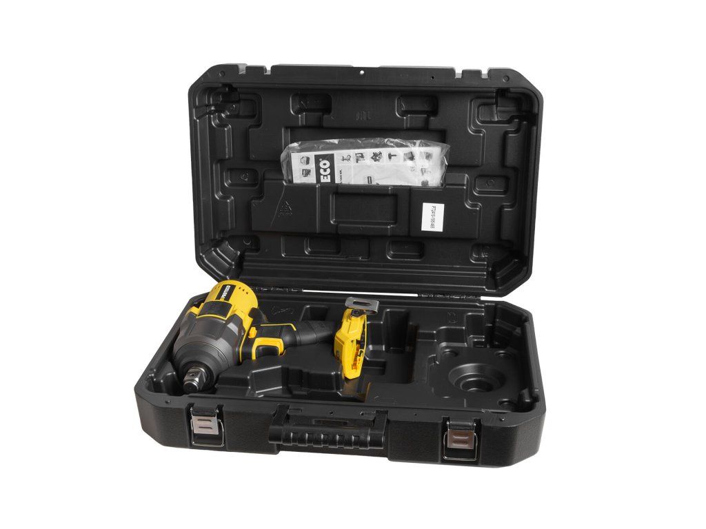 Součástí balení je praktický kufr, do kterého lze uložit utahovák spolu s dvěma akumulátory (až o kapacitě 8000 mAh) a nabíječkou. Kufr zajišťuje bezpečné skladování a snadný transport. Pro rychlou manipulaci na pracovišti je utahovák navíc vybaven přezkou, díky niž jej lze připnout například k opasku.