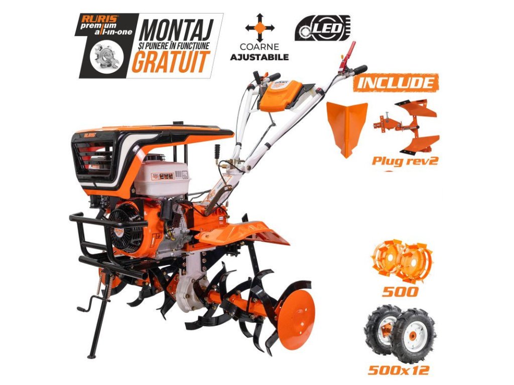 Profesionální motorový kultivátor RURIS 915ACC, vybavený motorem o výkonu 15 HP a objemem válců 420 ccm, dokáže bez problémů obdělávat jakýkoli typ půdy bez ohledu na její tvrdost, přičemž dosahuje hloubky až 360 mm s účinností nad 1500 m2. /h