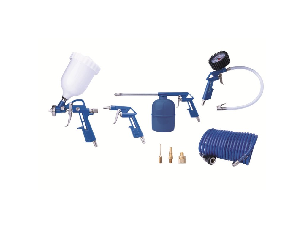 8-dílná sada příslušenství ke kompresorům velmi praktická a oblíbená sada příslušenství, kterou využije každý kutil ve spojení se všemi běžnými kompresory nástroje ze slitin kovů jsou vybaveny rychlospojkami